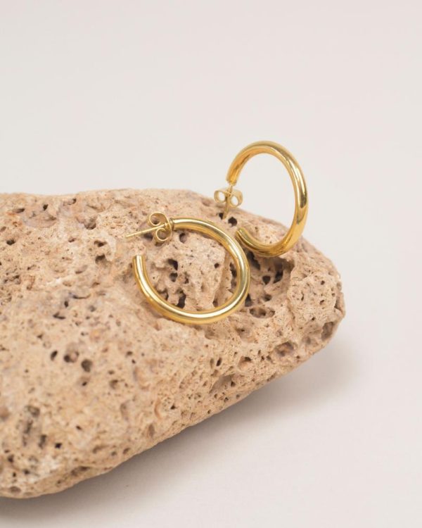 These earrings are the perfect accessory for any outfit. Crafted from high-quality gold-plated metal, these hoop earrings feature a unique design with a delicate Circonite stone in the center. The lightweight design makes them comfortable to wear all day long. Add a touch of glamour to your look with these stunning gold hoop earrings.