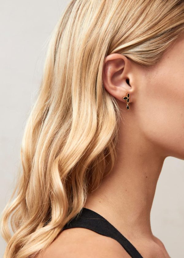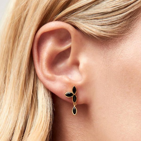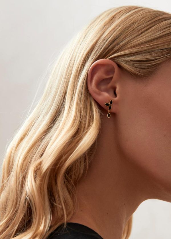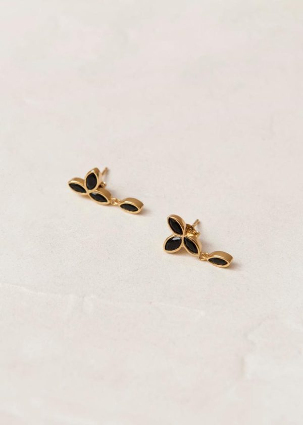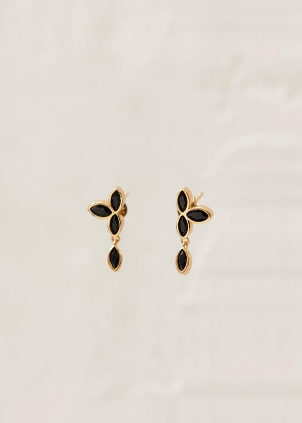Women Jewelry | ALOHAS Sunflower – Black Crystals Gold Earrings