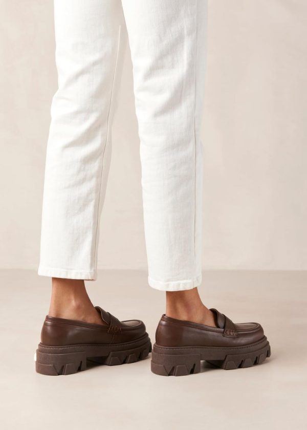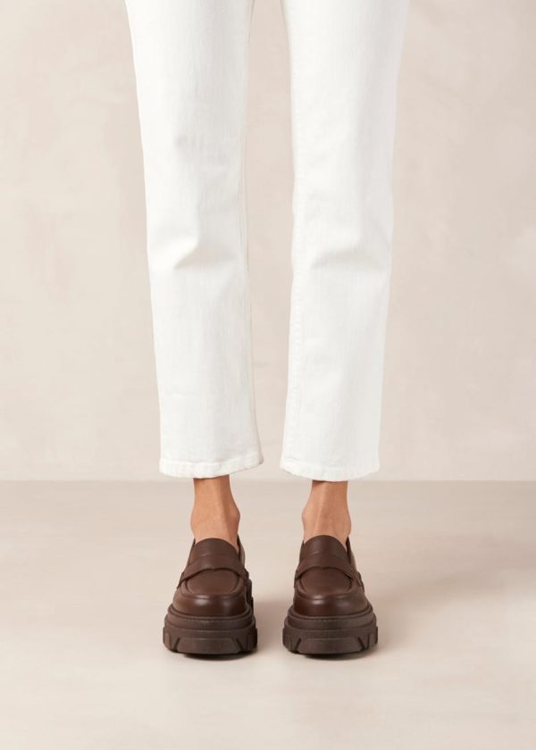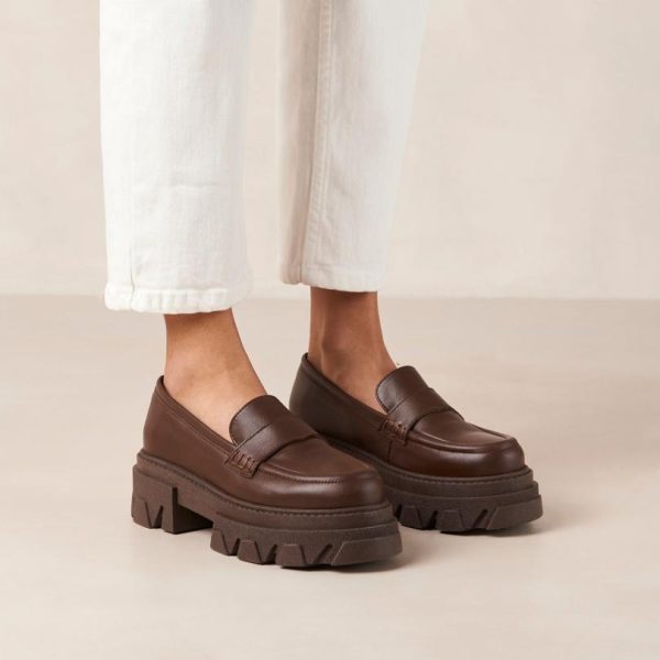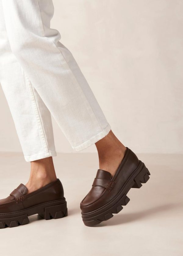 Brown leather chunky loafers