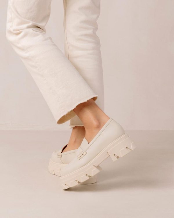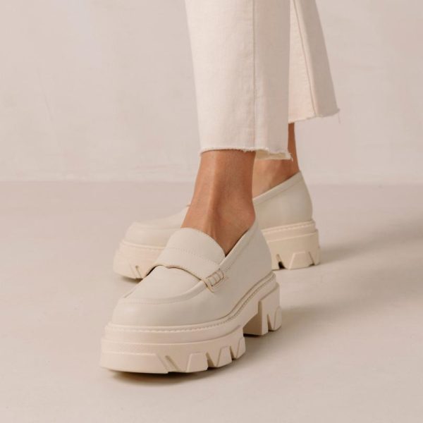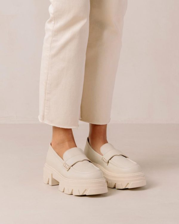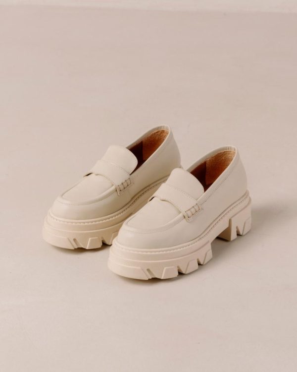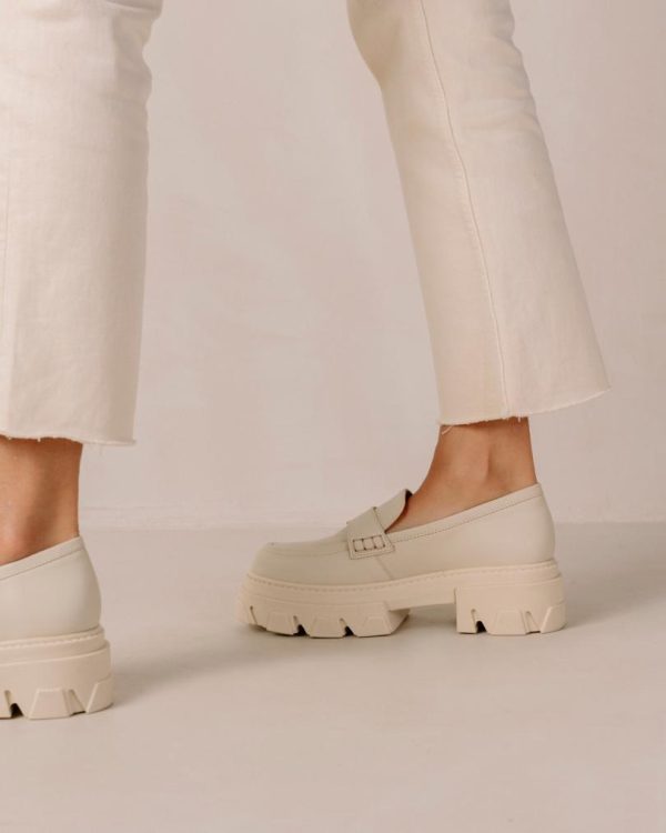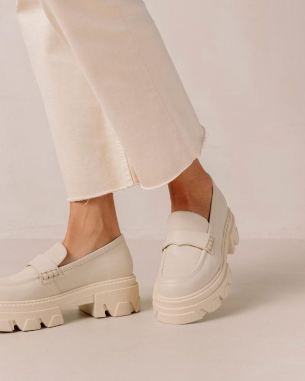 White cream leather chunky loafers