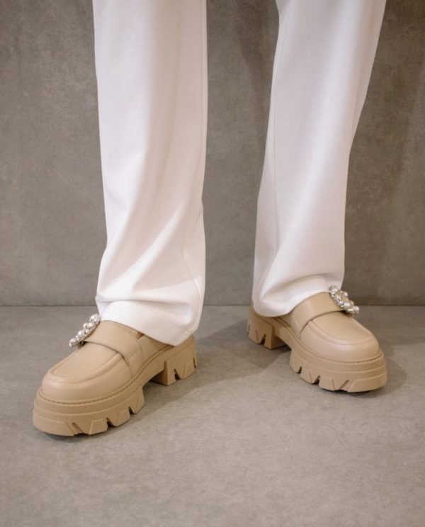 With their classic charm and a dose of sparkle, these chunky loafers will forever have a special place in our fashion-loving hearts. They are made from beige leather, topped with a crystal buckle and set on cleated rubber soles that feel a touch more modern than your traditional moccasin style. Bring out your Trailblazer and ankle socks for a new-school take on preppy dressing.