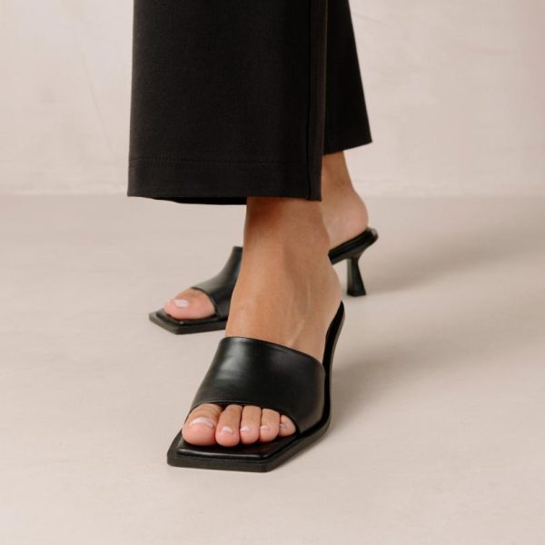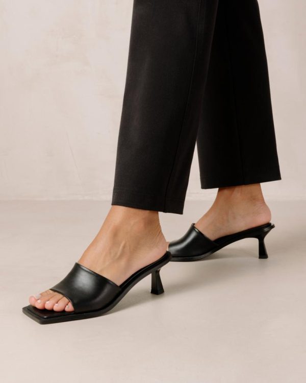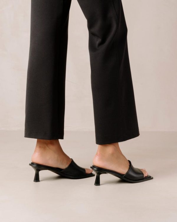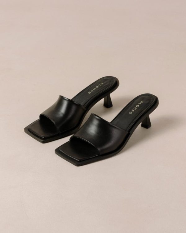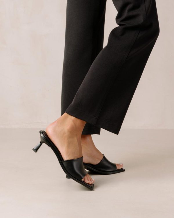 Defined by an understated silhouette exuding a minimalist, 90s feel, the Daphne mules are crafted from smooth black leather and poised on glossy curved heels engineered for day-to-night wear. They feature cushioned outsoles finished with an edgy square toe that feels distinctly retro yet very contemporary. The pared-back design means they will go with just about anything in your existing wardrobe to suit a number of occasions – you can thank us later!