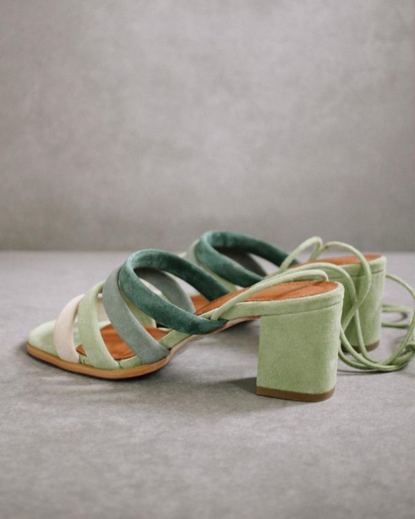 It’s not fifty shades, but it comes close! The Letizia sandals are made from velvety suede that feel pleasantly soft on the skin. Resting on sturdy block heels, they feature multiple front straps in green gradients and long, pin-thin ankle ties. Wear them as a subtle pop of color (or five!) to a monochromatic outfit.