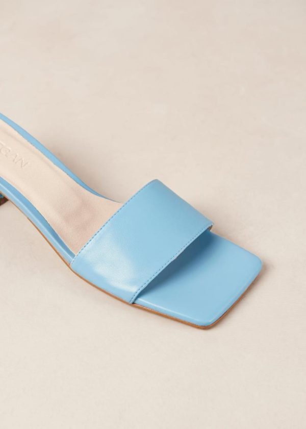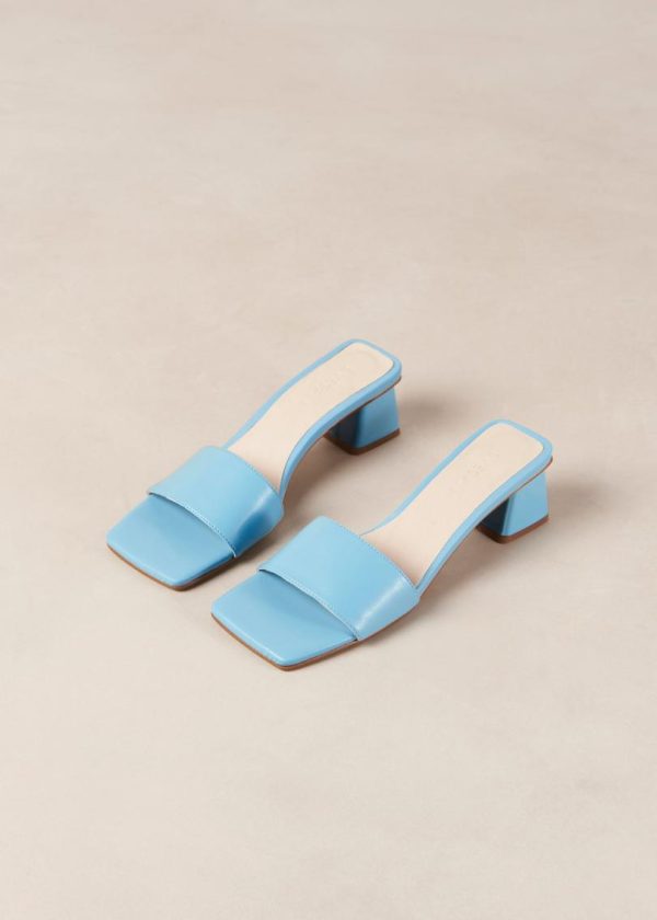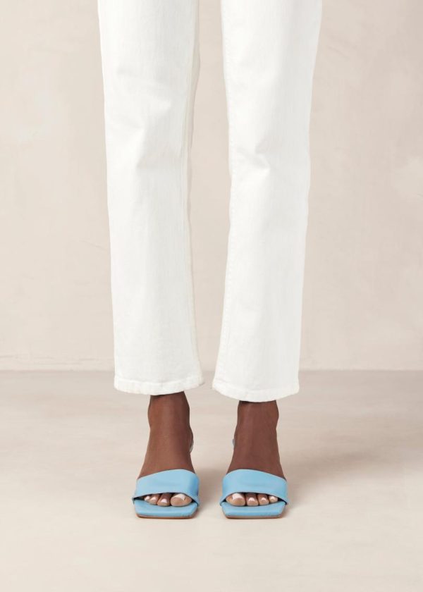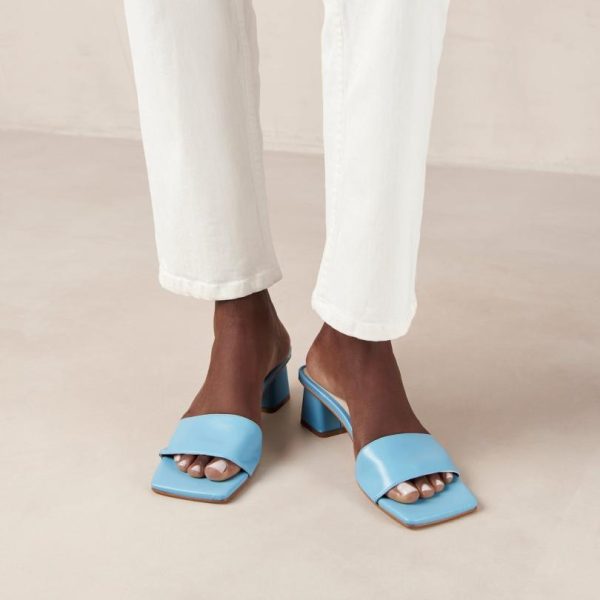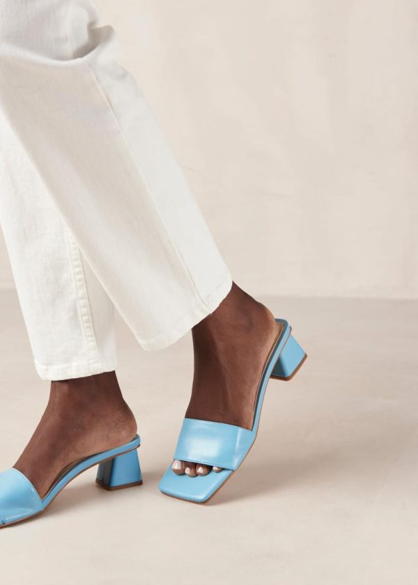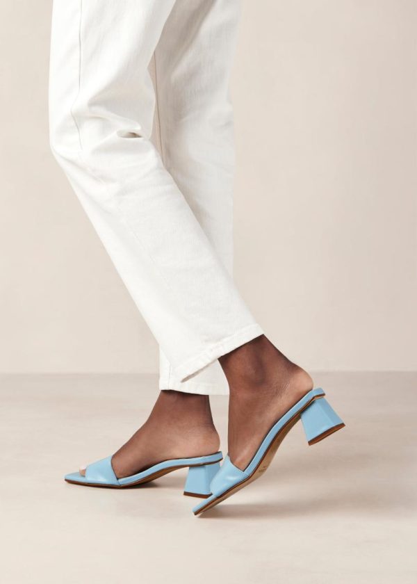Set atop a low block heel for comfortable elevation, these slip-on-and-go, vegan leather mules have been named after their contemporary squared open-toe. They are crafted from blue faux leather and feature a wide upper strap that promises style and support when hitting the streets. Add them to your footwear rotation asap.