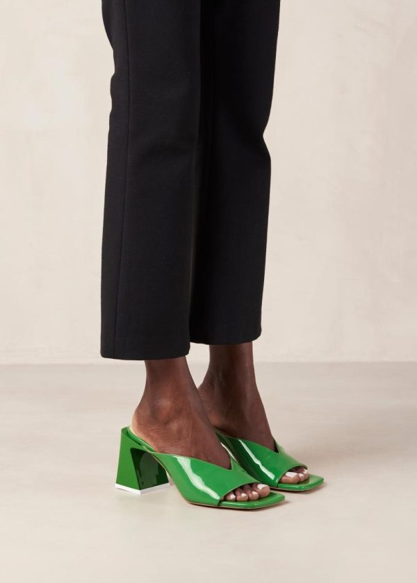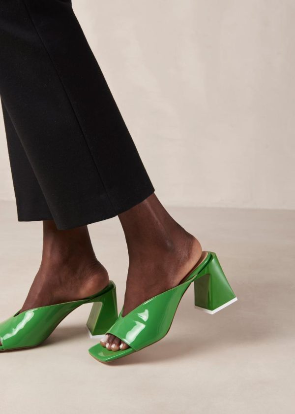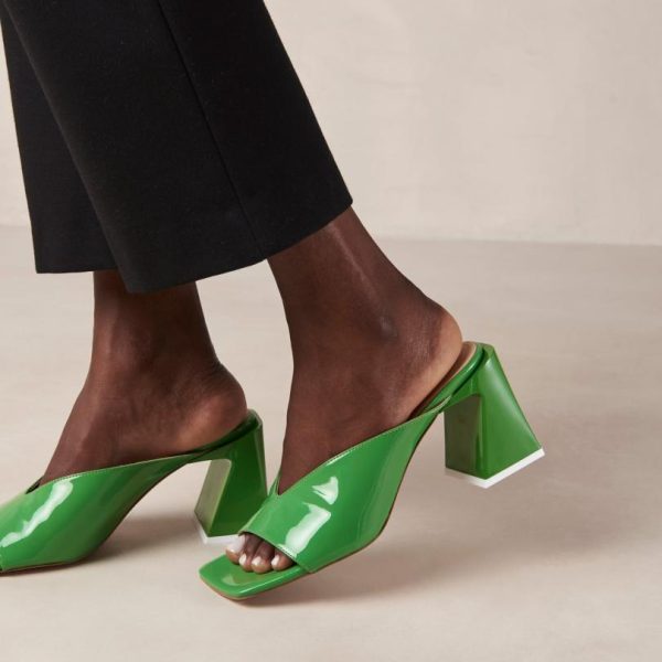 Green leather mules with block heel