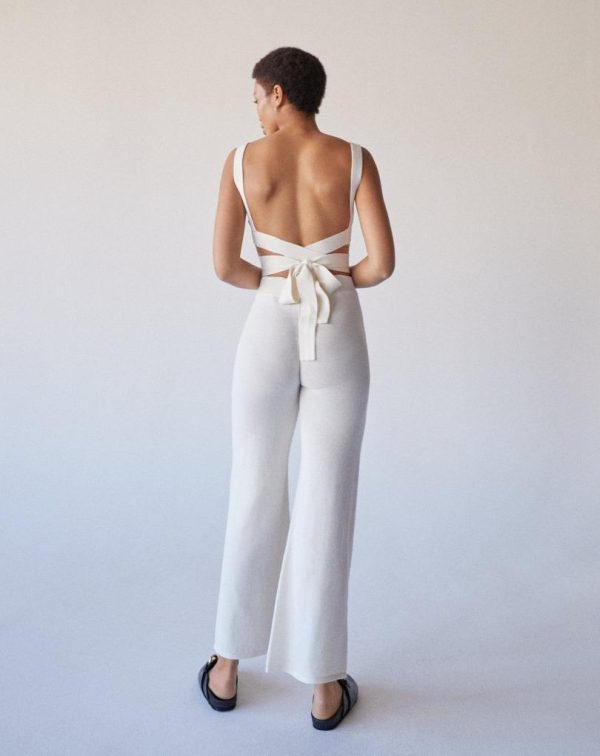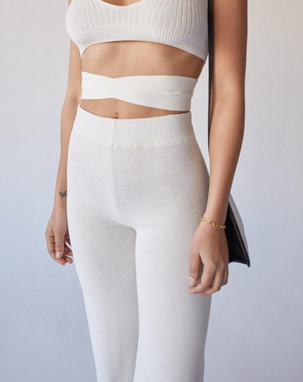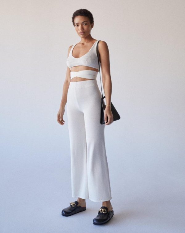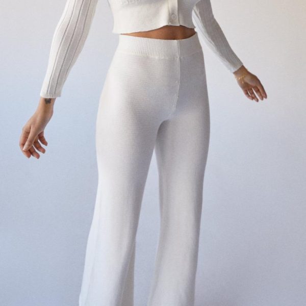 Women Pants | ALOHAS Easy Wide – White Knit Pants