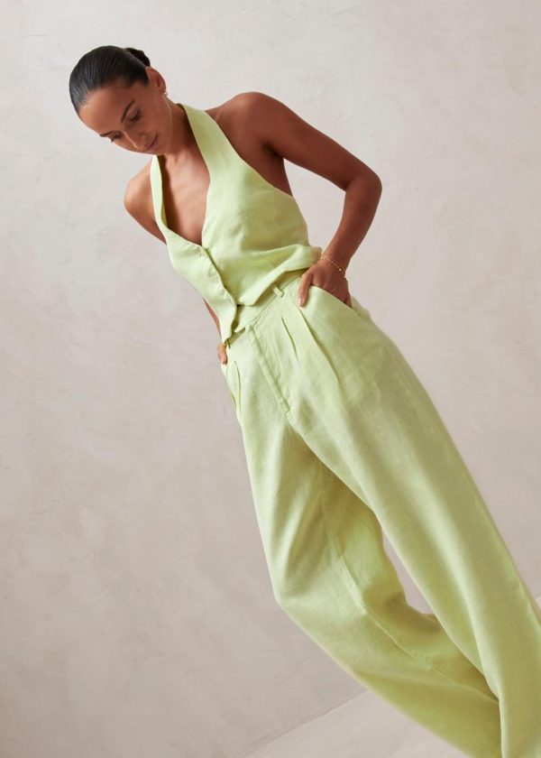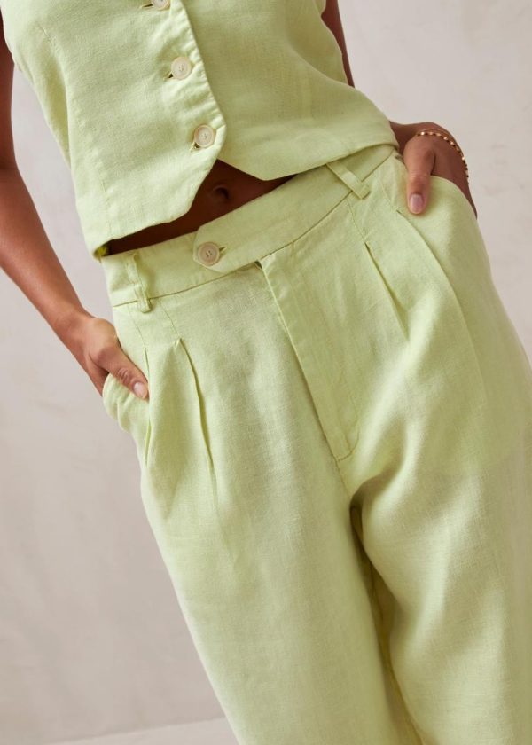 Relax meets chic? What better way to do that than some linen pants. However you style the Kaede, you can count on them feeling casual yet surprisingly put-together, thanks to their pleated design and tailoring-inspired details. Take your pick from your favorite flats or sandals to compliment the slightly cropped wide leg on this green-colored pair.