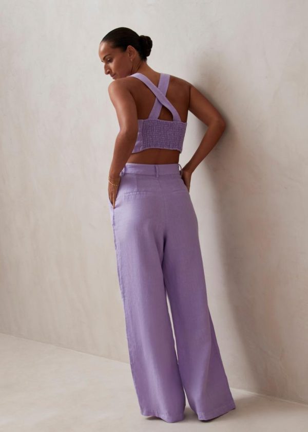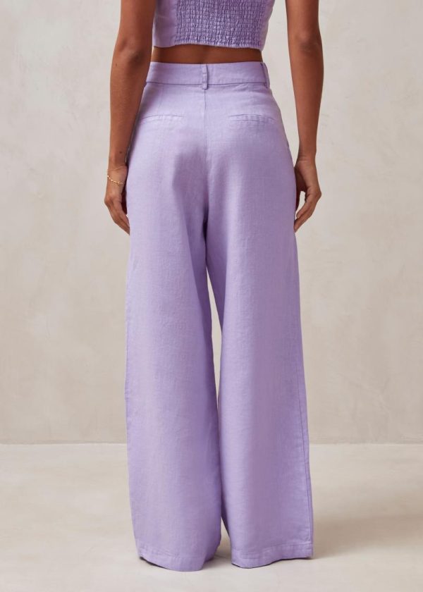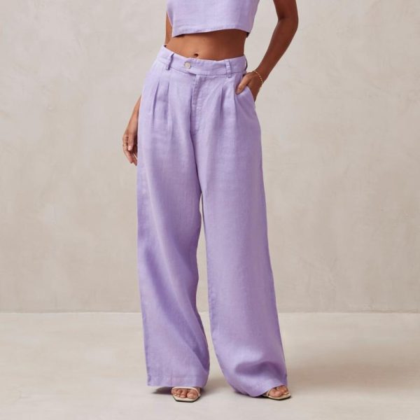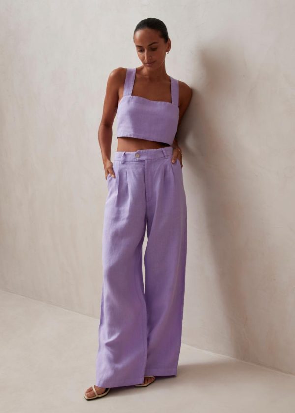 Purple linen wide-leg pants