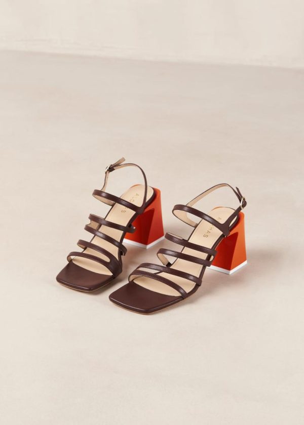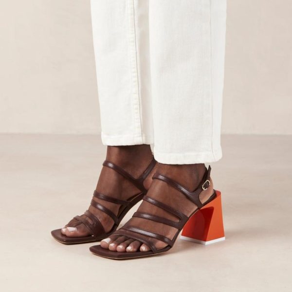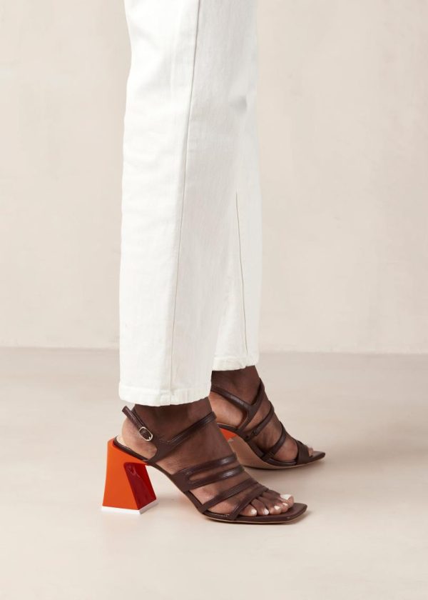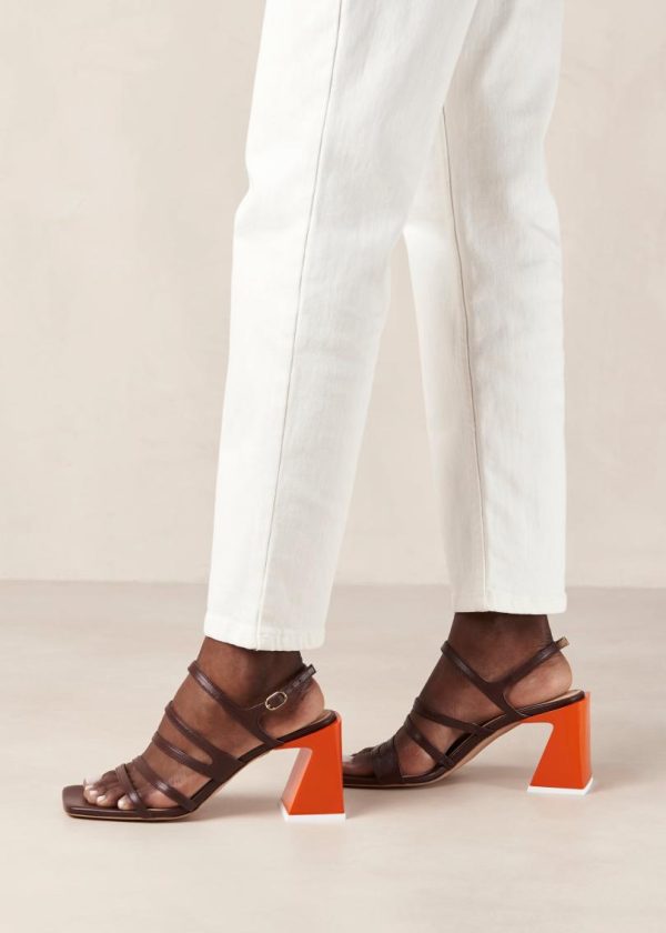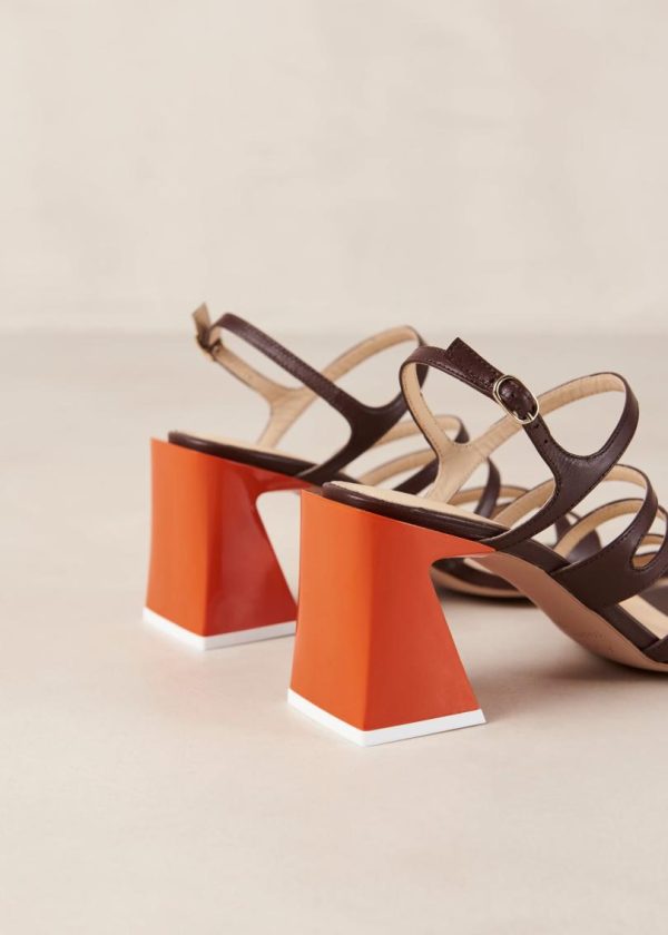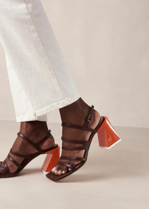Mood booster. With fun colorblocking and a playful twist, the Aubrey is a pair of heeled sandals that’ll lift your step as well as your spirit. They have straps crafted from brown leather, while their sculpted heel is lacquered with an orange gloss finish. Wear them whenever you could use a little extra pep in your step.