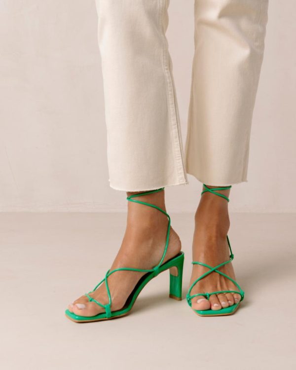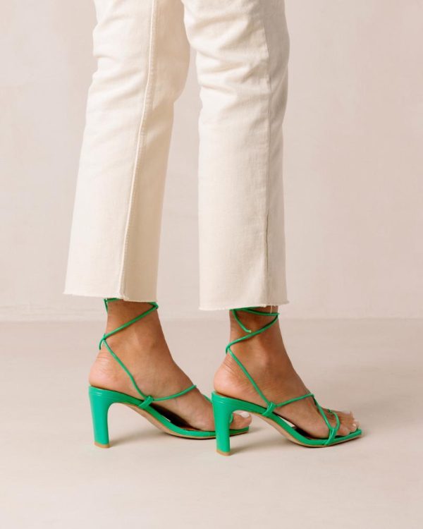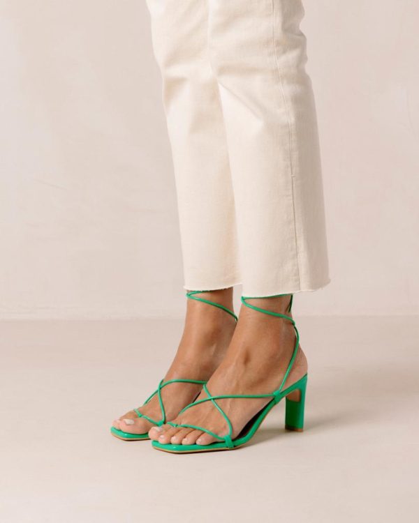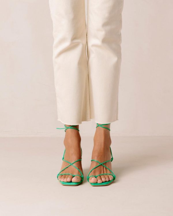 Green leather lace-up sandals
