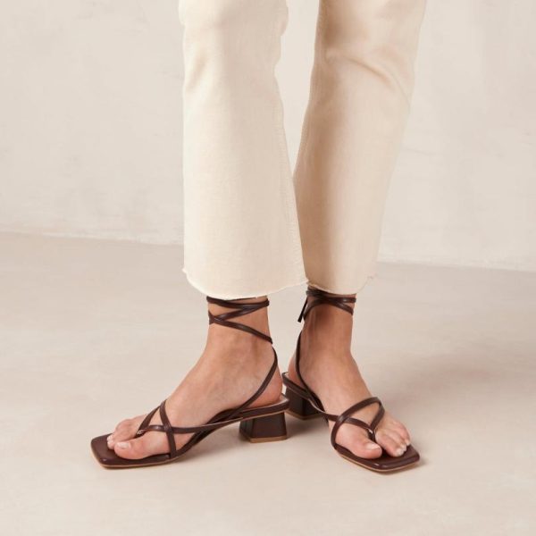 Tan lines time. Crafted from brown vegan leather, the Elio lace-up sandals go from casual strolls to weddings. They rest on slight block heels and feature criss-cross straps forming a post-toe design. Wrap the long ties around the ankles or calves – this style is designed to be versatile and playful, which is exactly how your summer should be.