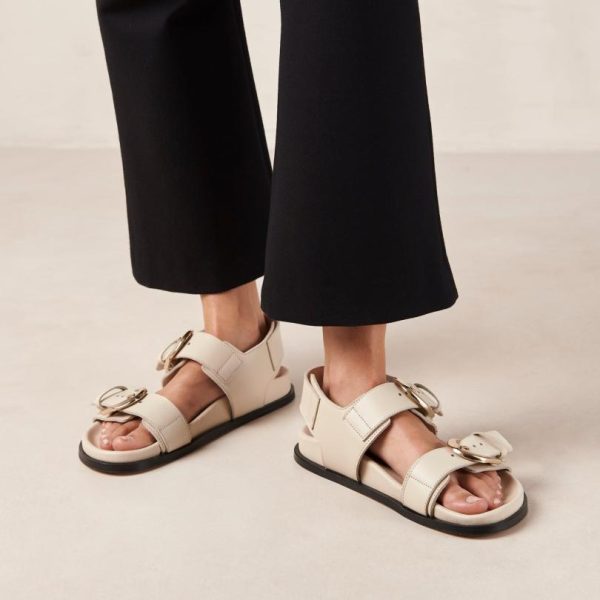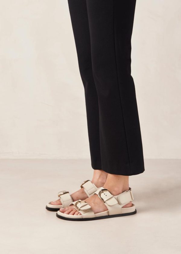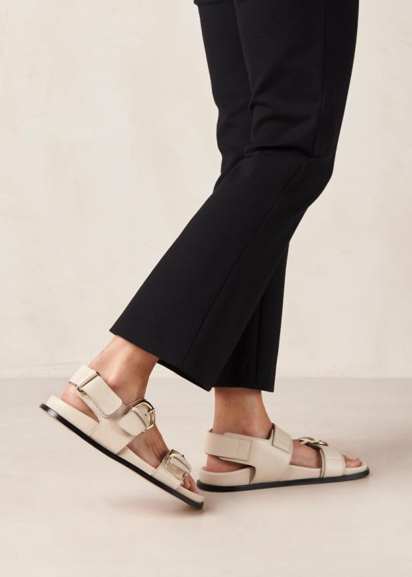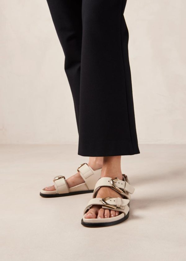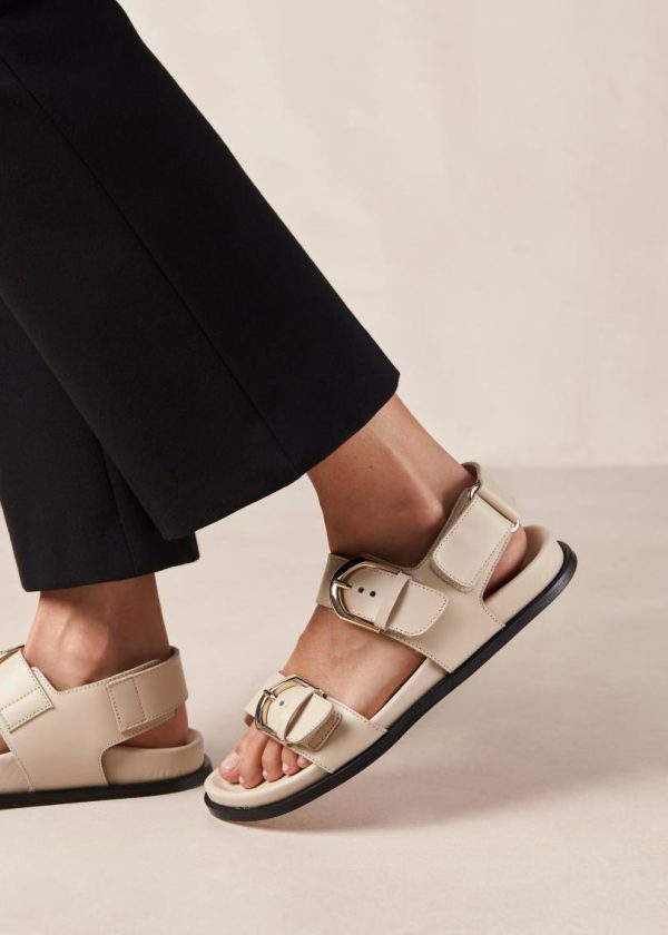 Cream leather sandals with double strap