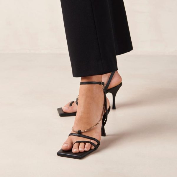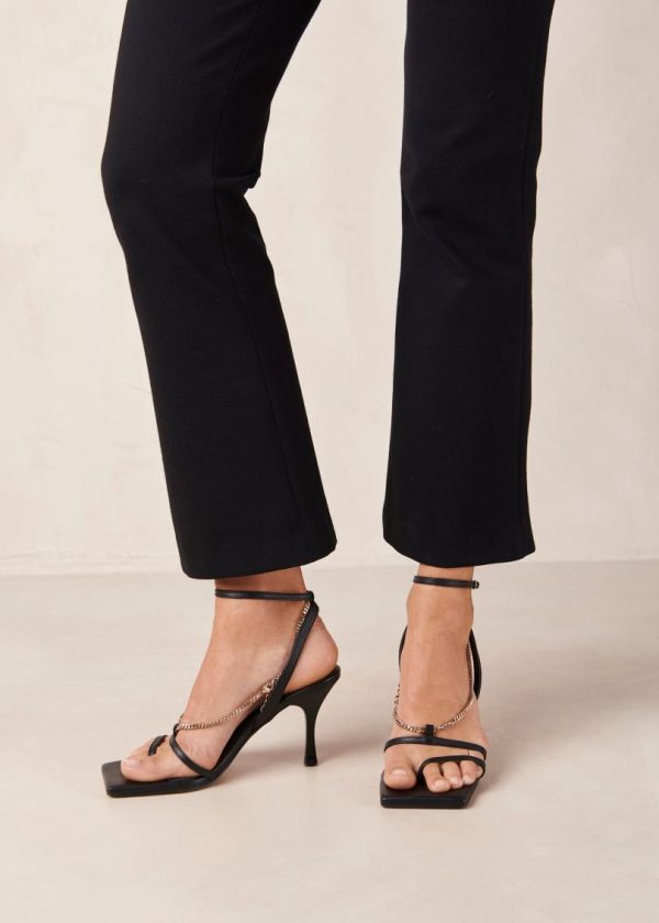 Black leather chain strap sandals