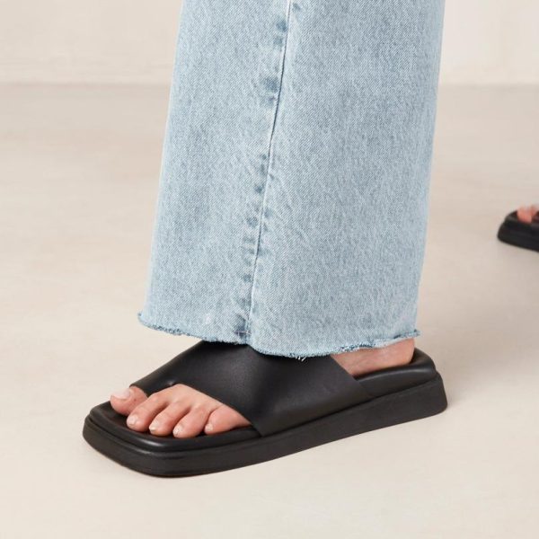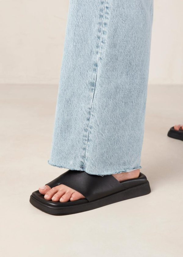 Black leather toe-ring sandals