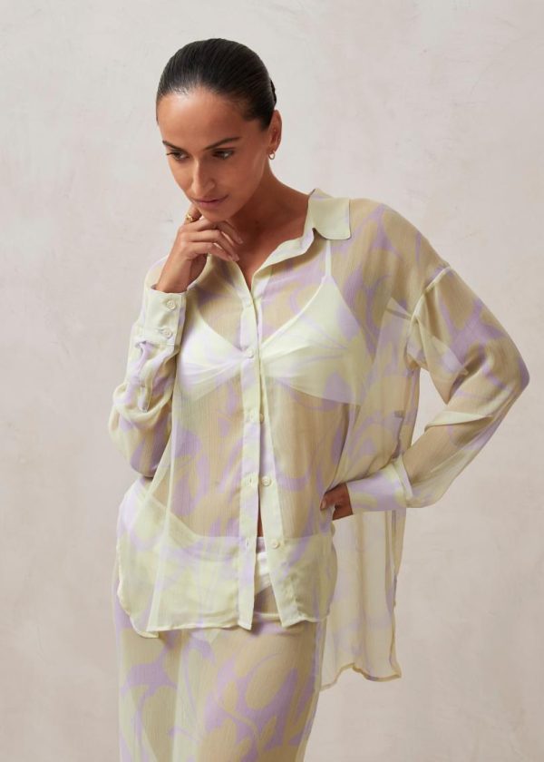 Hawaiian shirt but make it sexy. The Yasu top is cut from sheer fabric in a comfortable oversized design, perfect to be layered over a bathing suit. It’s finished with easy button fastening and splashed with a subtle floral print. Wear all together with the Sua skirt as you hit up the beach.