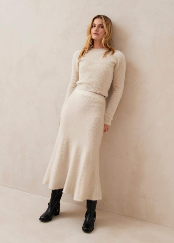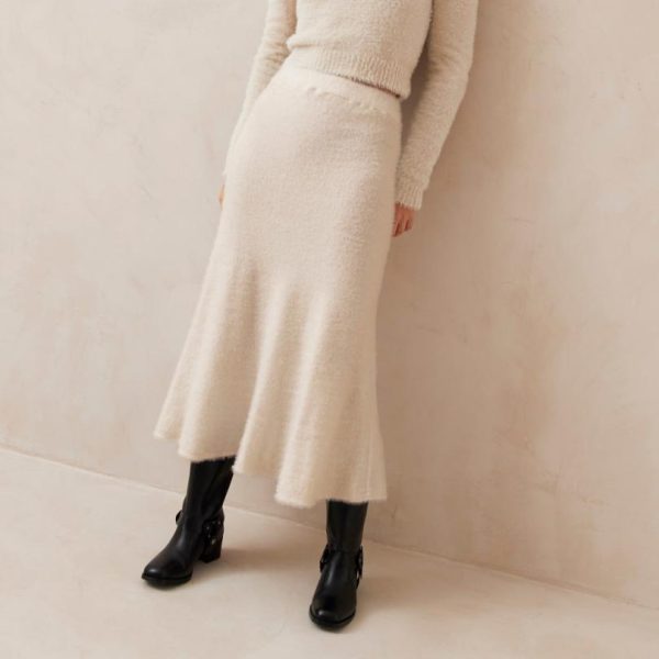 Ecru knit midi skirt