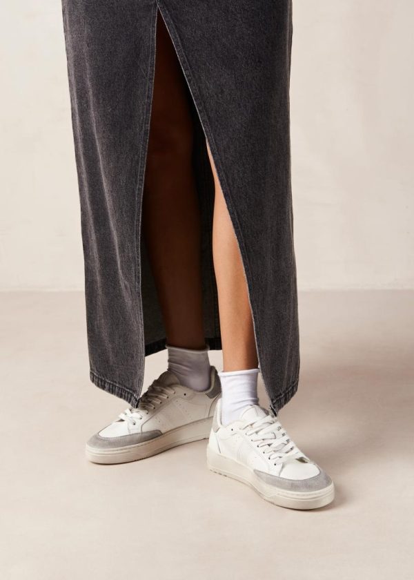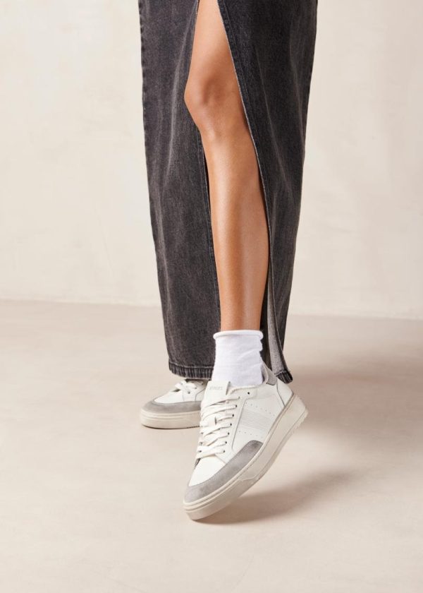 Off-white leather distressed low-top sneakers