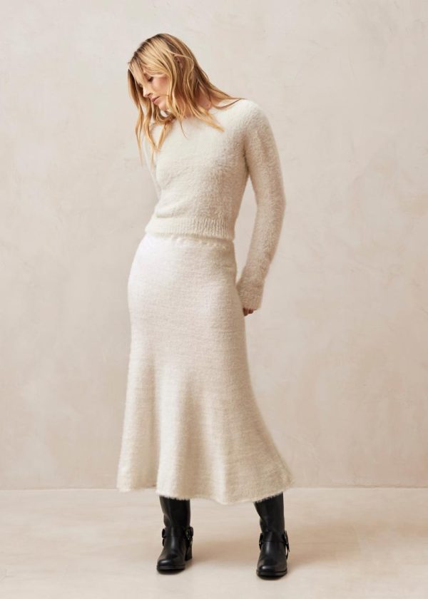 As the name says, the Deli sweater is a delight to wear on colder days. Knitted for a fuzzy feel, it’s shaped with dropped sleeves and ribbed trims. The cropped length is all about easy styling as it lends itself well to both layering over dresses and semi-tucking into pants.