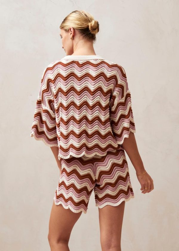 Just add jeans. Bursting with bright color, the Messina striped sweater brings big summer energy whatever the weather. An absolute mood-booster, the fit is straight yet feminine with short sleeves that hit just below the elbow and scalloped hemlines. Wear with denim or with the matching shorts when the sun’s out.