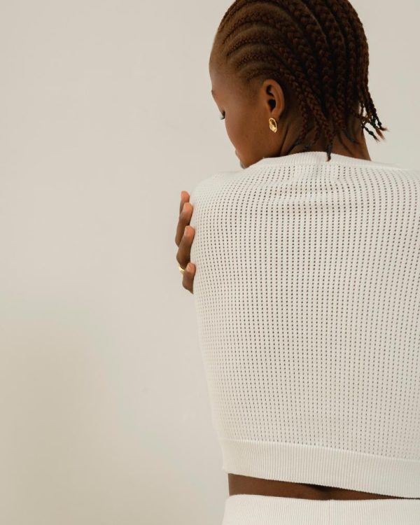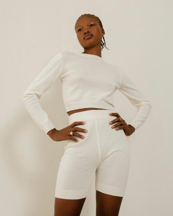 Designed for all the sporty(ish) ladies out there, Roy is your athleisure-inspired crop top with loads of fashion appeal. It’s cut from stretchy pointelle knit in a classic white hue and features ribbing around the collar, the bottom hemline and the cuffs. Wear it with the Rookie pants to match for whatever you consider exercise – yoga sessions, coffee runs and so much more.