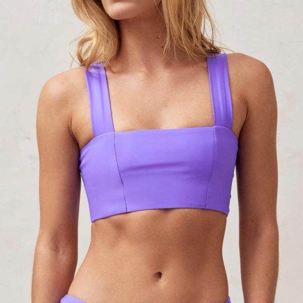 Have you booked that flight yet? You may or may not be jetting off soon, but one thing we know – the Lyn bikini top is coming with you. With a minimalist, square-cut shape, it provides plenty of coverage and support, while also being universally flattering. Opt for the purple colorway and wear it with the matching Eka bikini bottoms.