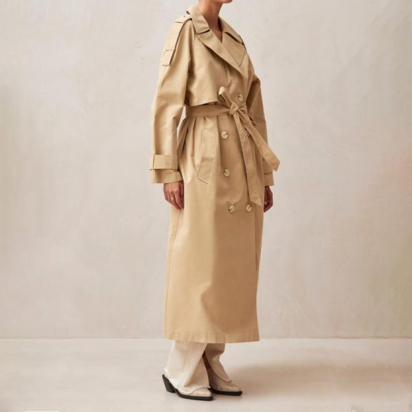 Meet your new go-to transitional essential – the ALOHAS Rain jacket combines classic sophistication with modern functionality. Expertly crafted from premium waterproof gabardine, this trench coat features all the signature details you love, including a double-breasted front, protective storm flap, and adjustable pull tabs at both shoulders and cuffs. Complete with a self-tie belt that beautifully defines your silhouette, this longline coat offers both style and practical weather protection.