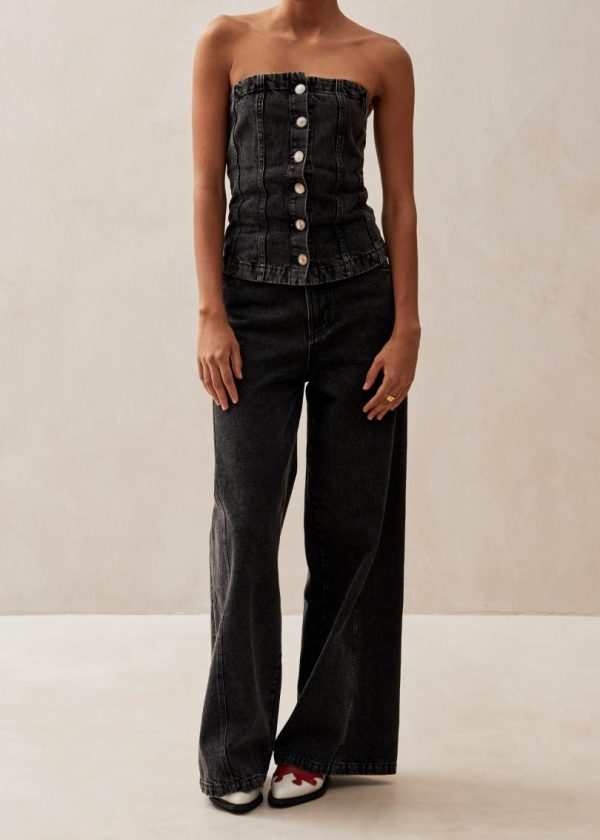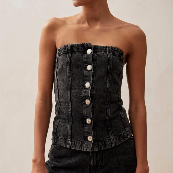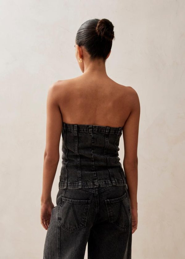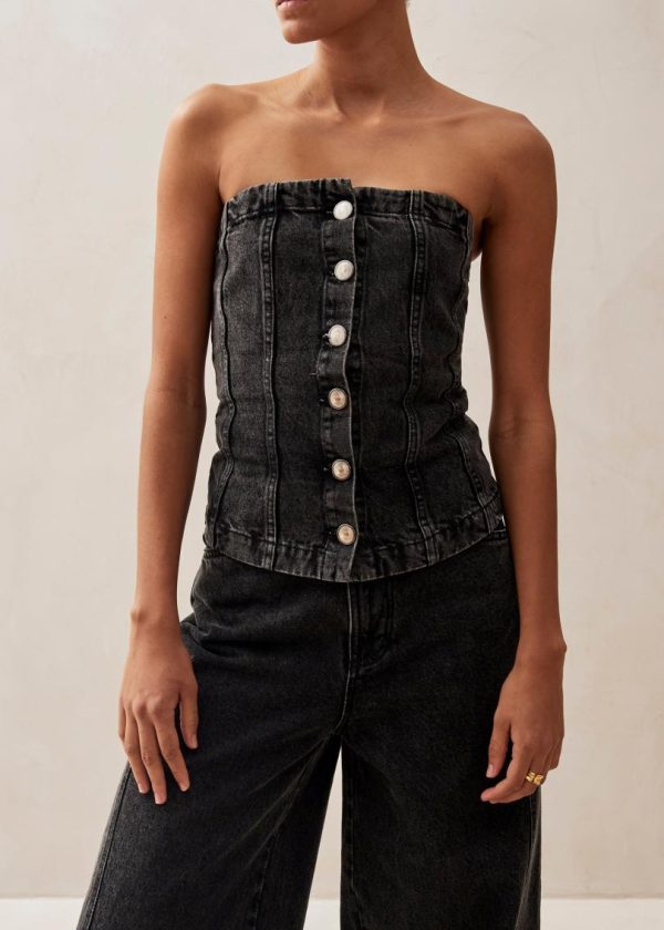 Sophisticated black denim strapless bustier top