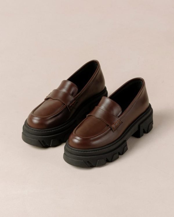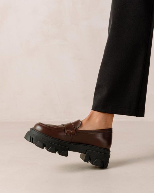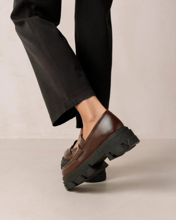 Dark brown leather chunky loafers