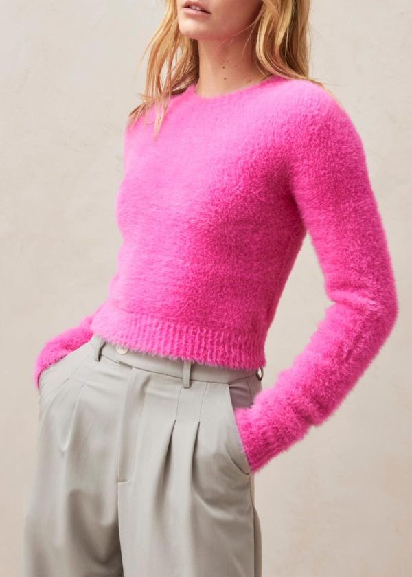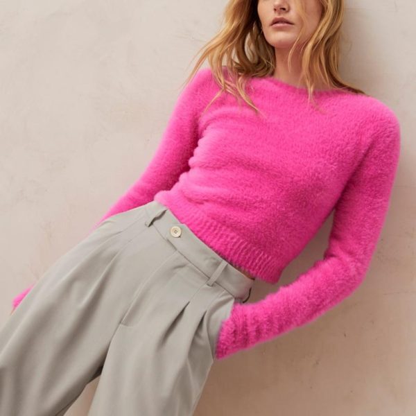 Pink fuzzy knit sweater